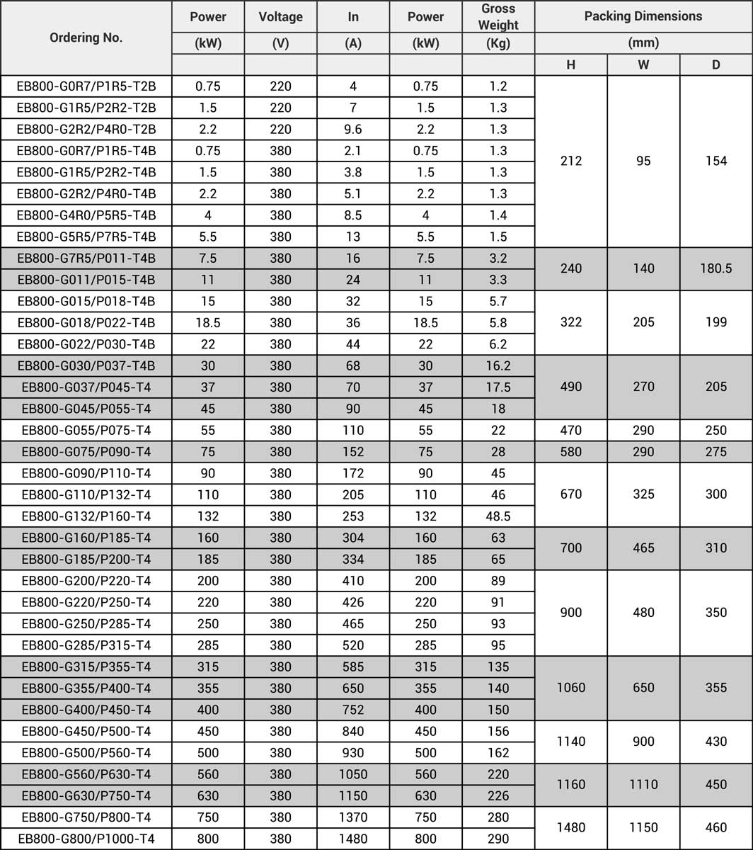 The inverter supports advanced DC braking and JOG control, making it ideal for heavy-duty and precise positioning tasks. A built-in braking unit is available in select models for faster stopping times. With wide application coverage—including chemical, pharmaceutical, textile, mechanical, solar pump, and EPS systems—it is a versatile choice for modern industry. The EB800 also offers a dedicated solar pump inverter mode with MPPT algorithms, achieving up to 99% solar tracking efficiency and built-in water shortage protection.
